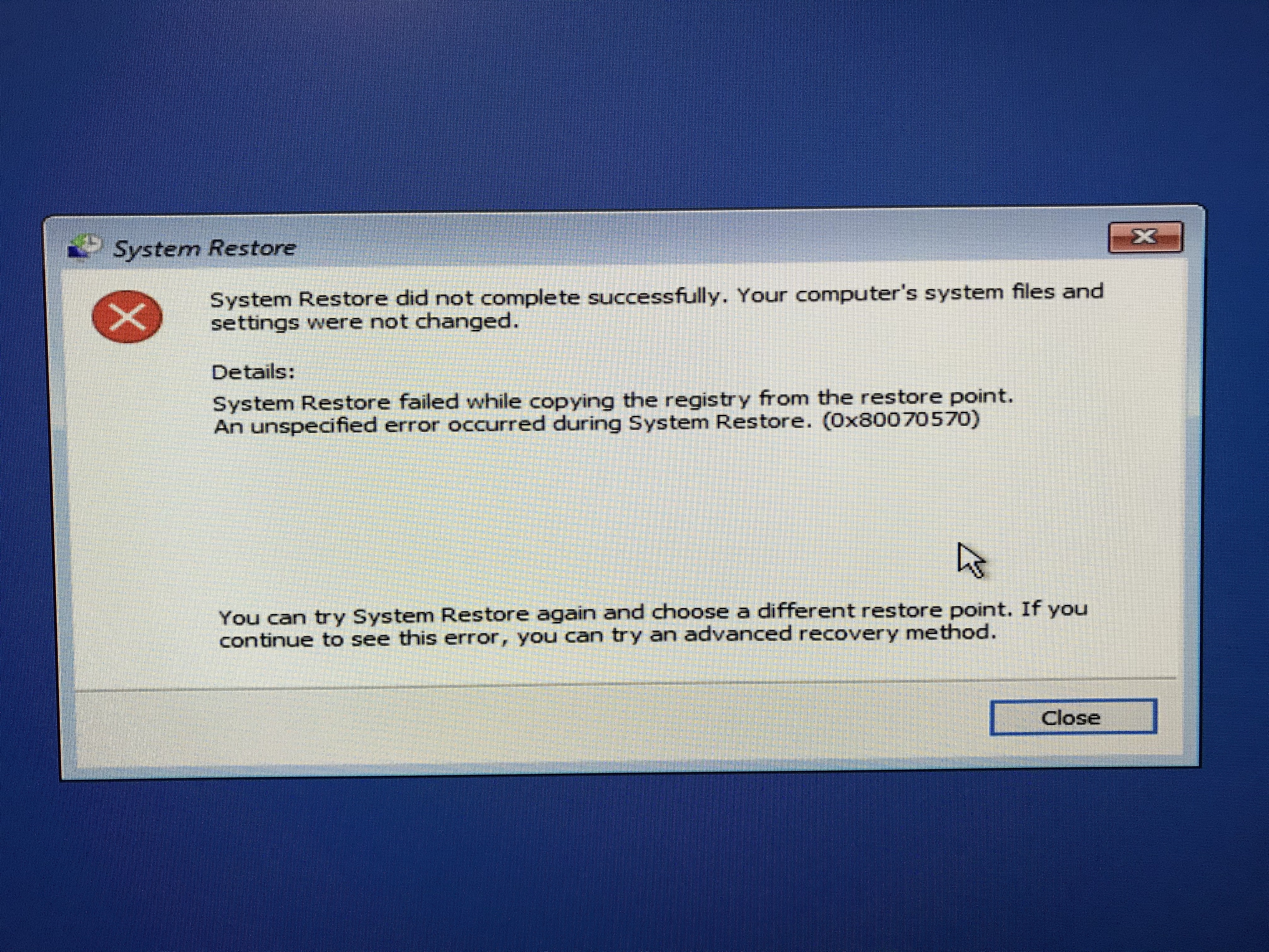 Now, trying to do a restore to pervious system restore points is generating errors as well. I’m pretty upset, as you can imagine.